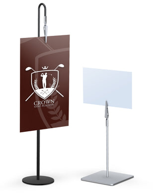 Miniclip Signholder | 14 Inch - 24 Inch High Telescopic | Sq Base | Gooseneck | Silver